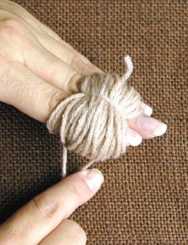 - Comece enrolando a lã no dedo e finalizando com um laço entre os dedos.